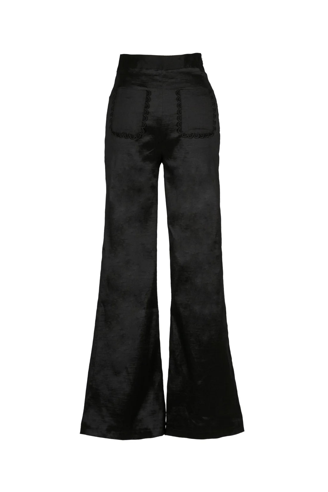 You're sure to be the statement of the party with our Willem Top and trouser set. Structured black top, featuring voluminous puff sleeves and a deep V-neckline, accentuated with a scalloped detail. The fitted top flares into a balloon-style waist, adding a sculptural element to the silhouette. It's perfect to be paired with fitted pants. Closed via back zip.