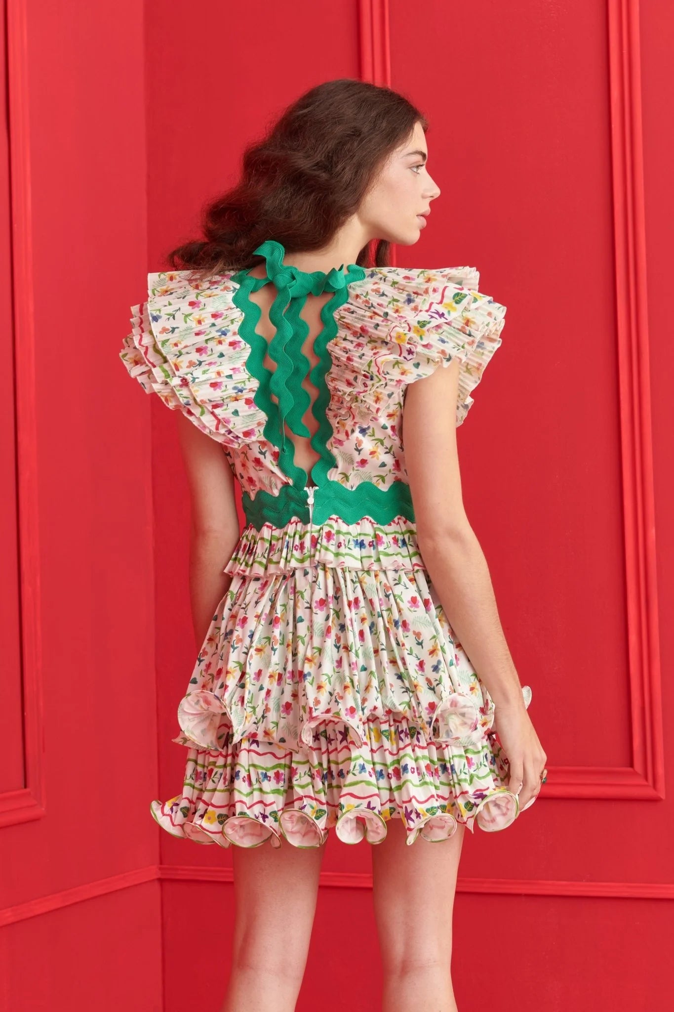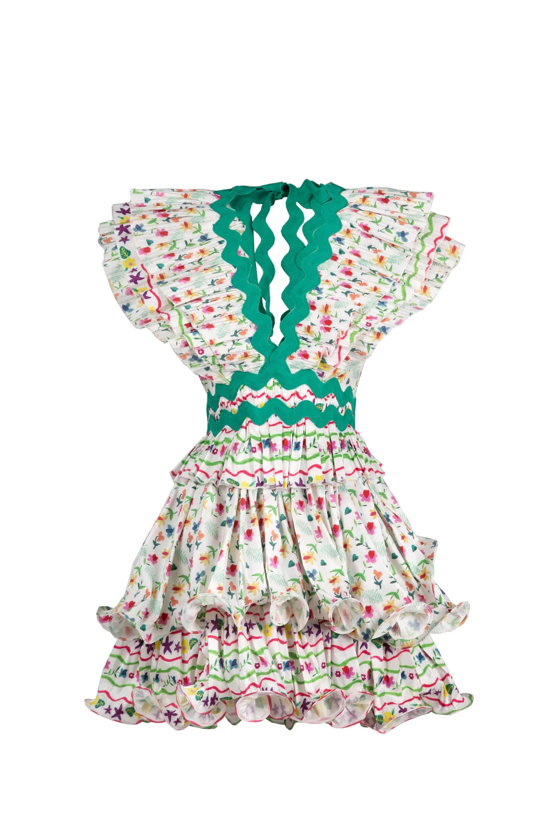 One of the brand’s classic silhouettes, the Prisma Dress returns this season in full summer style. With its scalloped V-neckline, ruffled shoulders, and a flouncy mini skirt, the Prisma is sure to turn heads. The contrast zigzag embroidery and its edgy flair make it your ultimate statement piece.