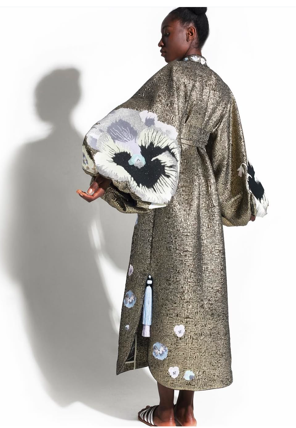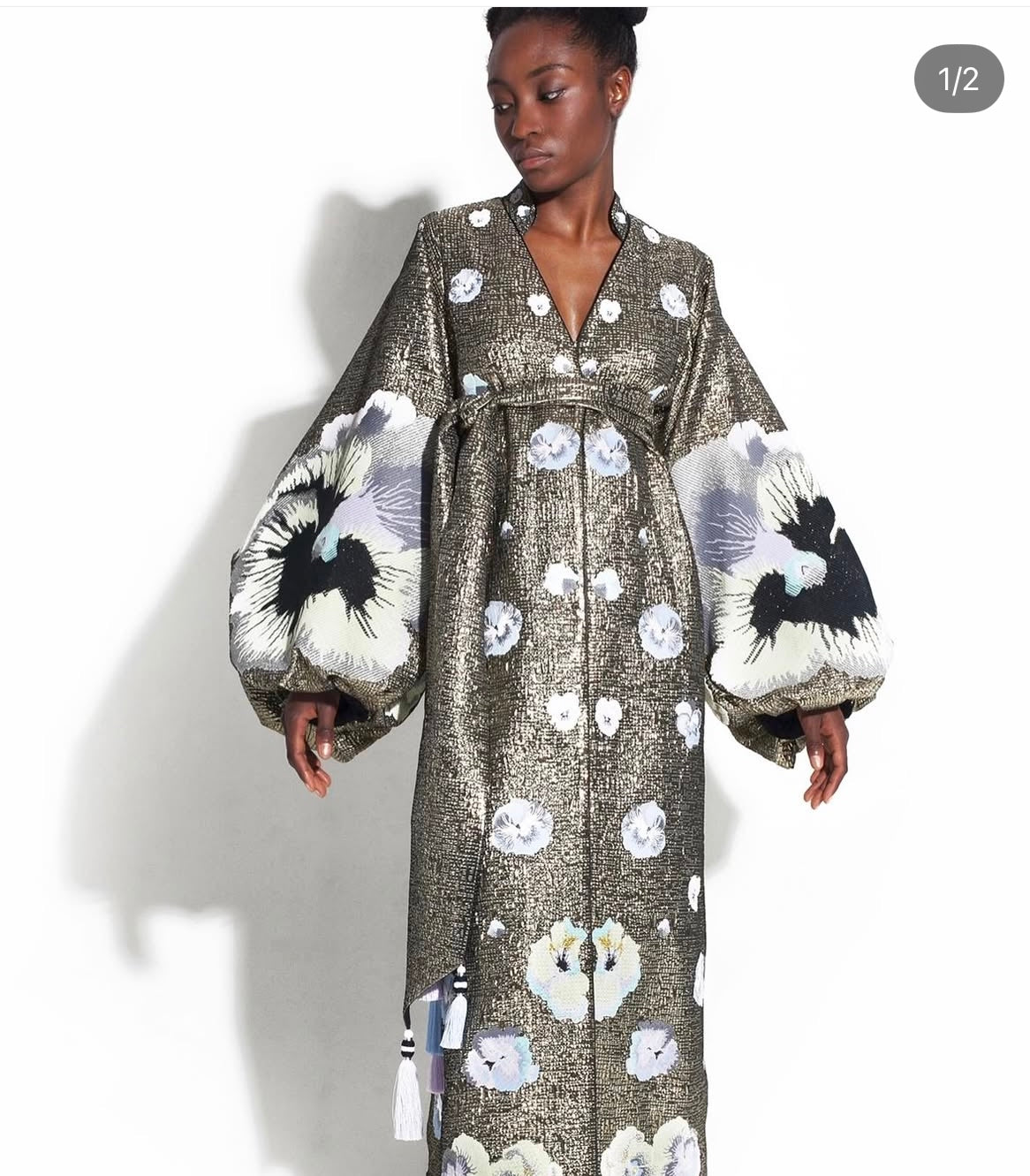 Kaftan Length - 155 cm / 61 inch. Kaftan has a boat shaped neckline. With wedges on the sides. Buttons are placed on all length of kaftan. There are buttons on the sleeves. Embroidery is made on the Japanese industrial machines. There are used high quality thread that do not fade. The product is hand stitched.