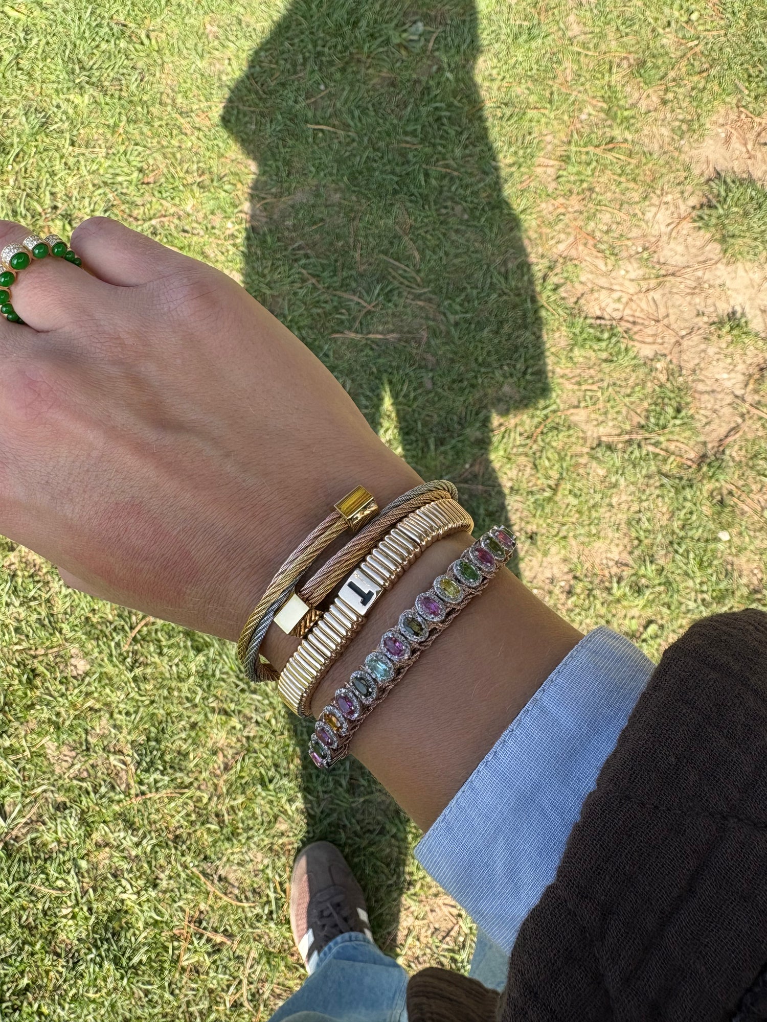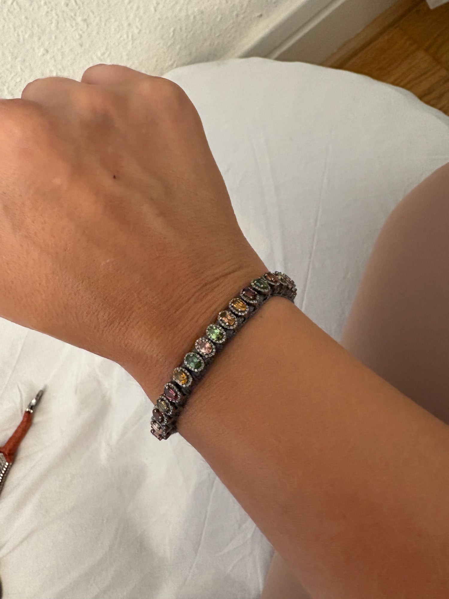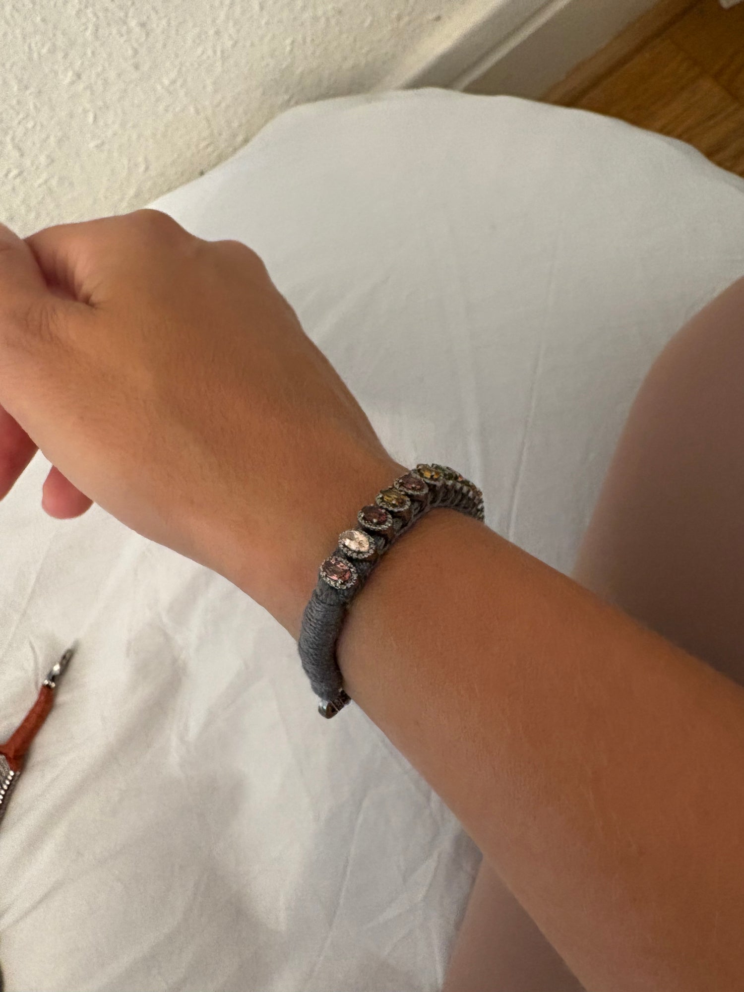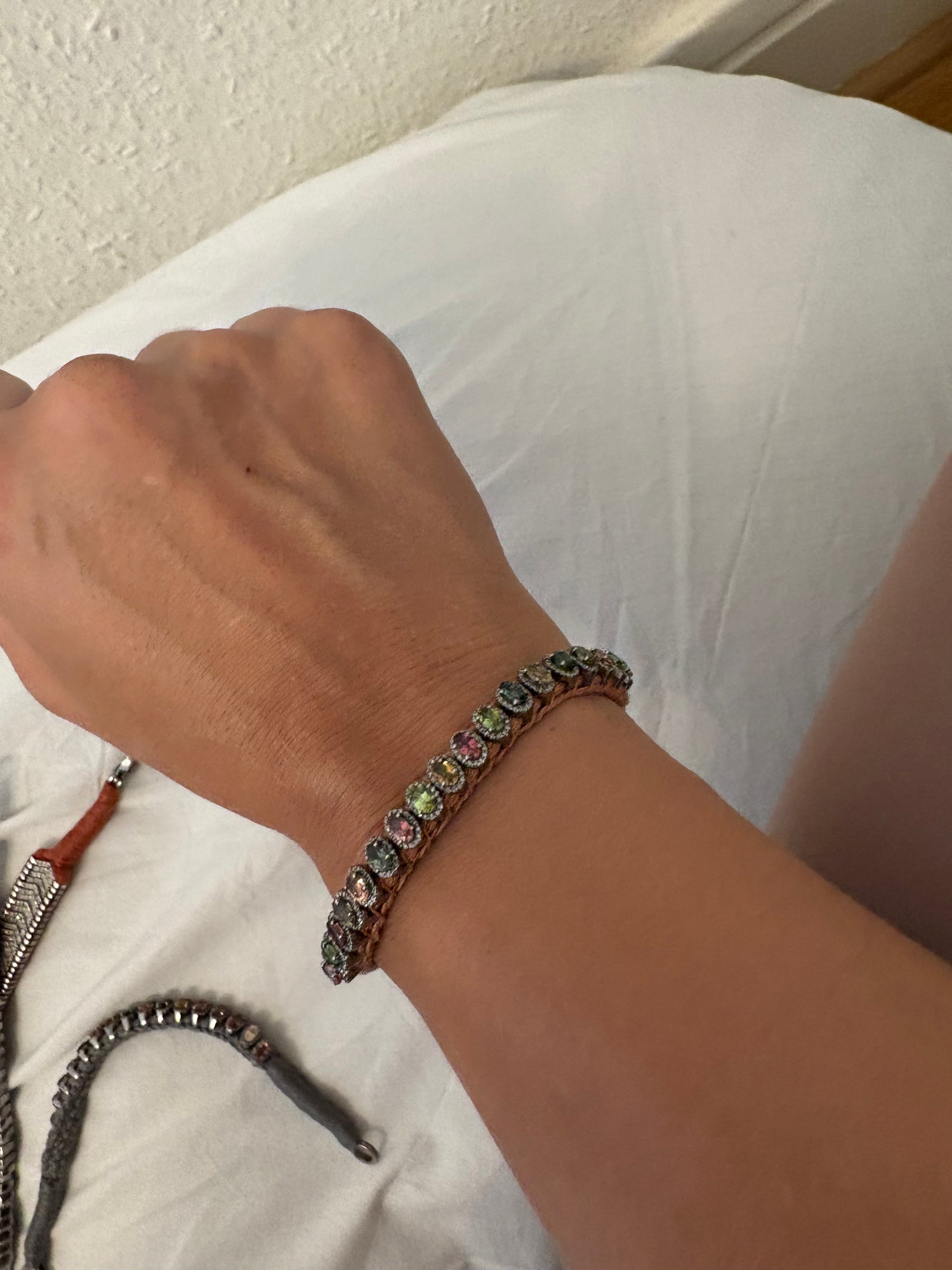 Semi precious stones and white diamonds mounted on sterling silver and silk cotton thread