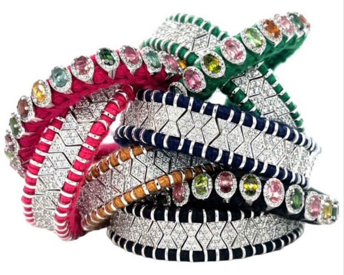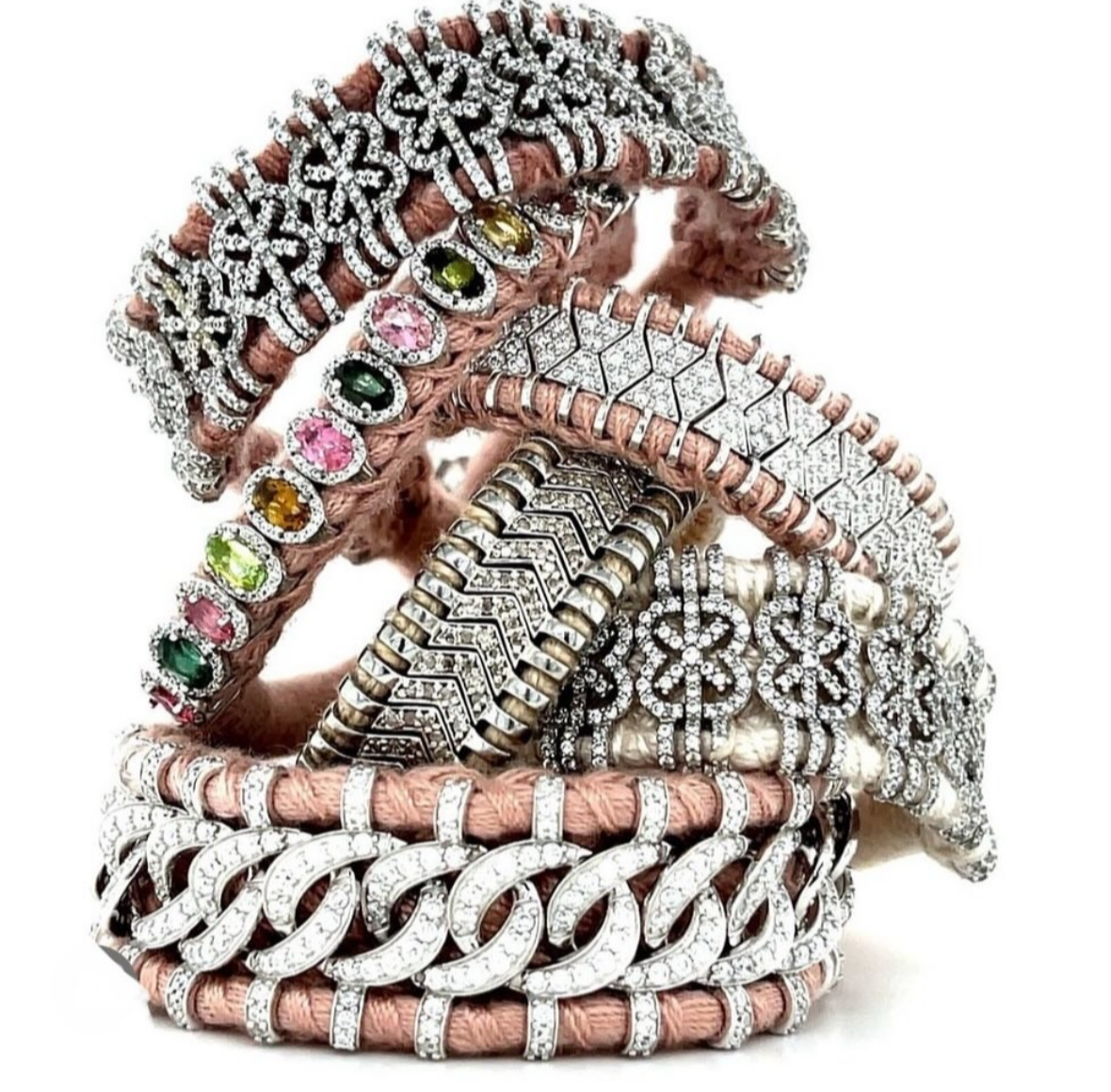 Janeiro bracelet in diamonds and silk cotton metallic thread